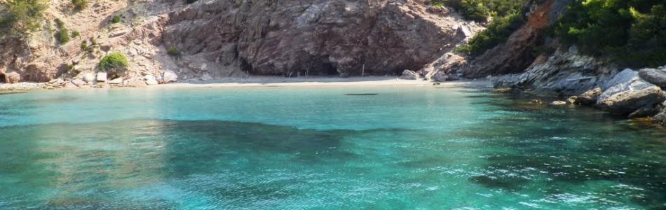 Agalipa is the combination of two beaches shortly after St. Peter, in a beautiful bay with pine trees going all the way down to the sea. Agalipes is the name of sea anemones which the residents of the island collect with spoons when the sea recedes. They are used to make “agalipokeftedes”, a local delicacy. One of the beaches is sandy with clear waters and the other one is the same but there is also a shipwreck there. The beaches are not organized and are an ideal retreat for those looking for secluded places. The access by land is difficult so the best way to get there is by sea.
